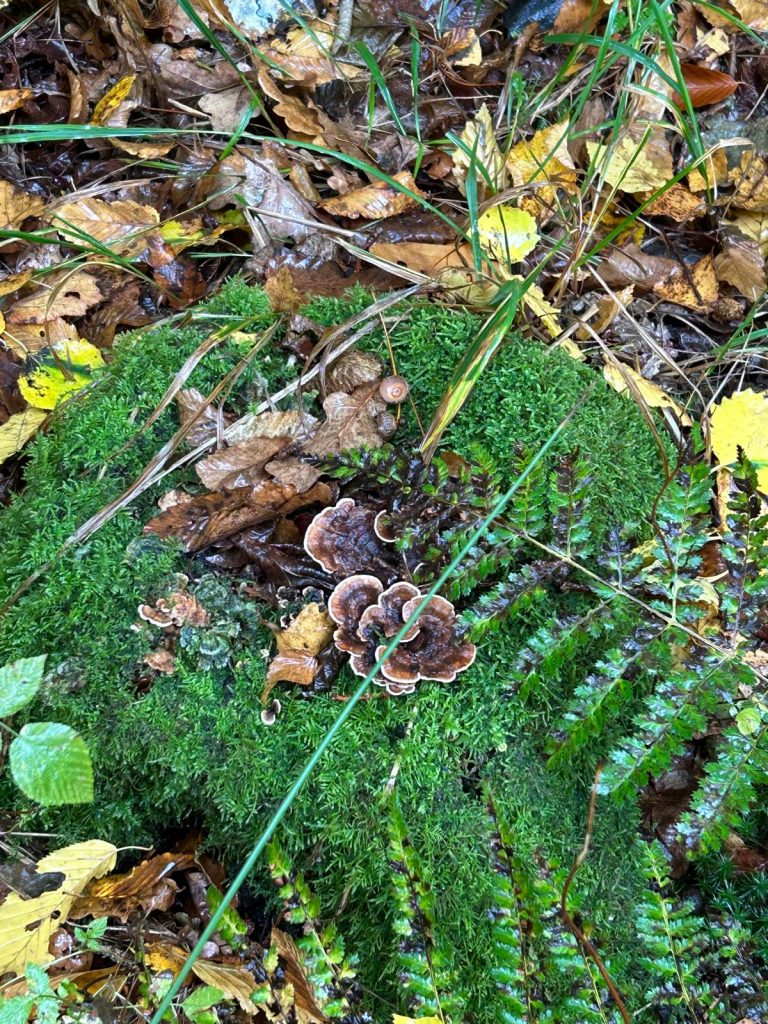 Mit den Augen jagen – eine Waldwanderung: Zu dieser Waldwanderung hatten sich eine Hand voll interessierte Wanderer trotz des sehr herbstlichen Wetters pünktlich um 11 Uhr im Waldweg eingefunden. Bevor es in den Waldbestand ging, gab es einige Erläuterungen zum Aufbau des Waldes und über die Notwendigkeit der Waldwirtschaft und Jagd. Bei einem Halt an einem der Ameisenhaufen zeigte sich ein neugieriger Feldhase. Viele Trittsiegel konnten aufgrund des frischen Laubfalls nicht gefunden werden. Als es dann in den Bestand ging, wurden einige Fraßspuren vom Dachs an Baumstämmen gefunden. An einer Fichtendickung roch es sehr nach Wildschwein und sofort wurden die Schritte etwas verhaltener und die Stimmen leiser. Doch es zeigte sich kein Schwein. Die schönsten Bilder zauberten allerdings die Pilze in den Waldboden und auf das Totholz. Zum Trost für den vielen Regen, zeigte sich dann doch noch kurz die Sonne. Nach fast zwei Stunden hatten alle Teilnehmenden Lust auf ein warmes Getränk. Am Ende wurde festgestellt, dass es doch ein schöner Sonntag Vormittag war.