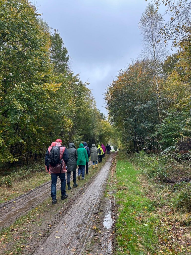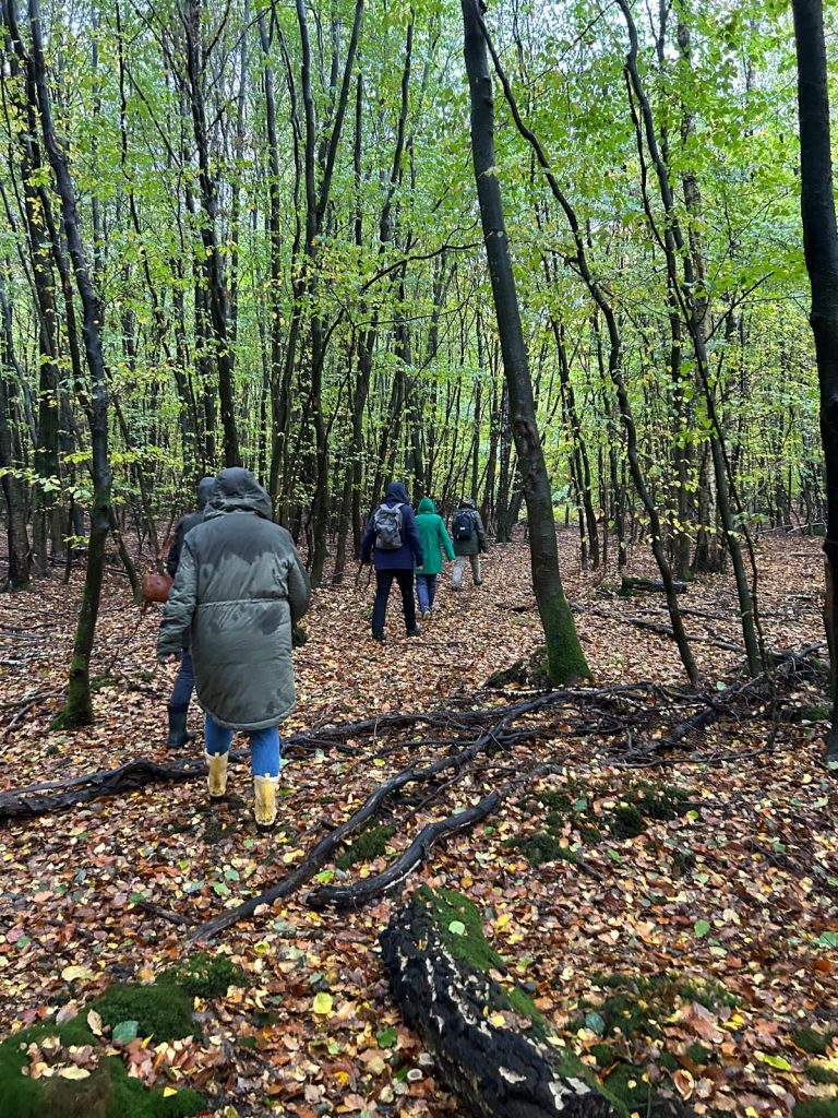 Mit den Augen jagen – ein Waldspaziergang – fand am 27. Oktober 24 statt. Aufgrund einer Pressemeldung kamen zahlreiche Anmeldungen. Obwohl die Sonne auf sich warten lies, waren zum Start doch tatsächlich alle da. So ging es zunächst auf dem Waldweg entlang und schon dort gab es einiges zu entdecken und zu besprechen. Die ersten Spuren der Wildschweine ließen nicht lange auf sich warten. Doch dann ging es direkt in den Bestand. Nach einigen Metern sprang bereits ein Reh ab. Wir bahnten uns den Weg durch sehr hohes Gras und zahlreichen Brombeeren. Es wurden Fraßspuren vom Dachs entdeckt. Als ein Hase absprang, waren alle etwas erschrocken. Einige hatten Wildschweine vermutet und waren ganz froh, dass es ein Hase war. Am Ende durften alle Teilnehmenden noch auf einen Hochsitz steigen und entdeckten doch tatsächlich ein Reh auf dem Feld. Am Ende kamen auch noch die Pilzkundigen auf ihre kosten und nahmen sich eine Mahlzeit mit nach Hause.